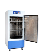 with a fan which keeps uniform temperature through out the chamber. A “L” shape prismatic thermometer duly graduated